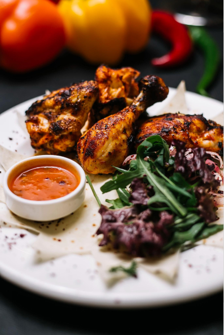 Start your meal with crispy Massala Poppadoms paired with tangy mango chutney, then savour Tandoori Chicken Main marinated with aromatic spices, followed by fragrant Chicken Biryani, a hearty, flavourful dish.